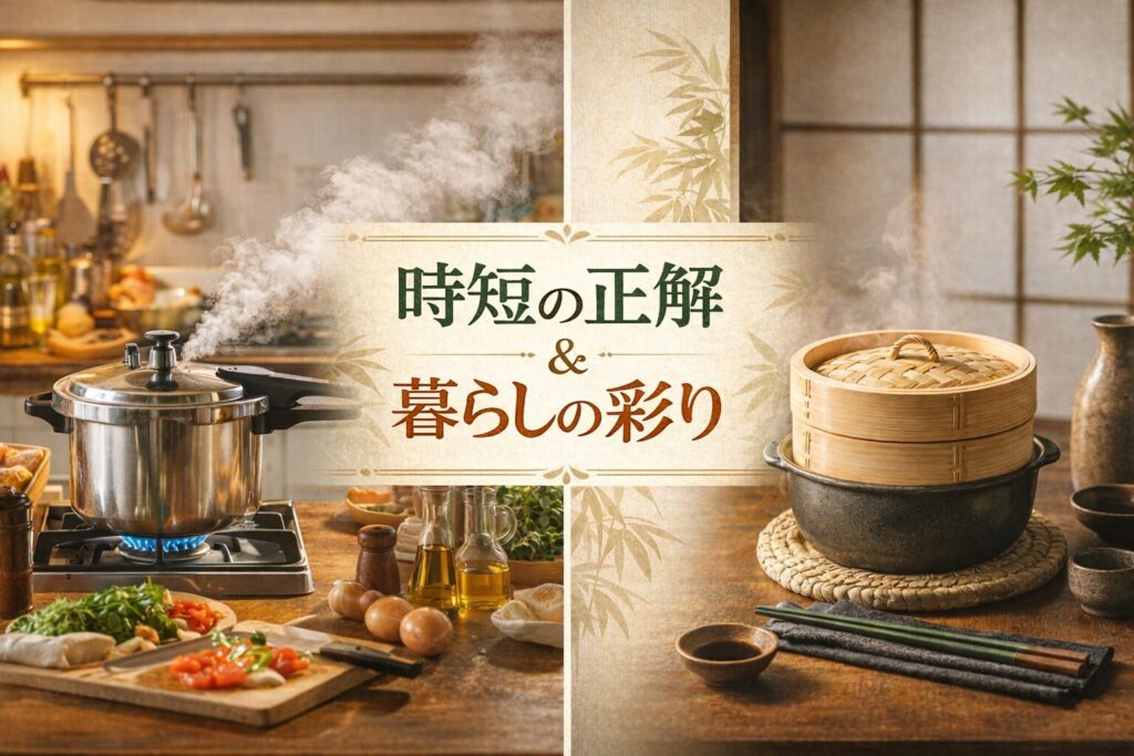 時短を叶える「圧力鍋」と、暮らしを彩る憧れの「せいろ」。今のあなたにちょうどいい道具はどちらでしょうか?20代・30代からの無理しない道具選びを通して、自分を大切にするための「心の余白」の作り方をご紹介します。 ※本ページはプロモーションが含... -