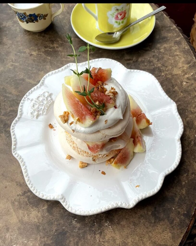 パブロバ、クリーム、いちじくを全部一緒に食べた後、エスプレッソを一口。この甘みと苦味の究極のコントラストこそが、お店が勧める最高の食べ方です。