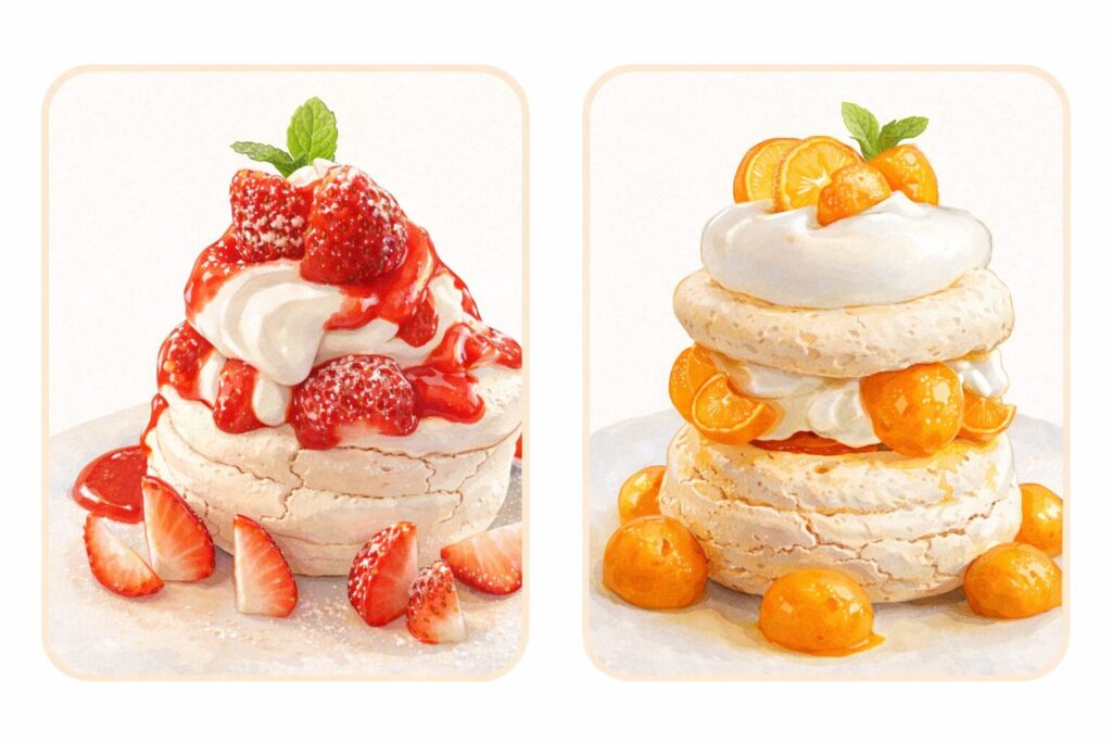 - 🌸 春の訪れ: ストロベリーなど、華やかなピンク色のパブロバが春の喜びを表現します。