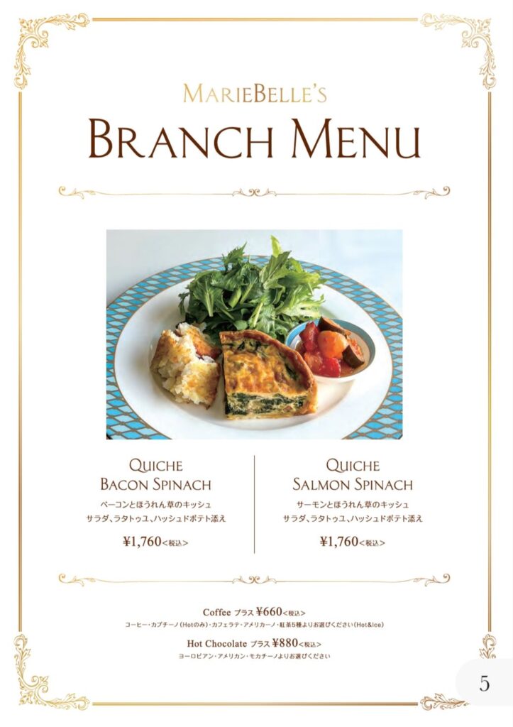 ブランチメニュー: Cacao Barらしい「キッシュ」または「エッグベネディクト」をブランチとして楽しむこともでき、滞在の幅を広げます。