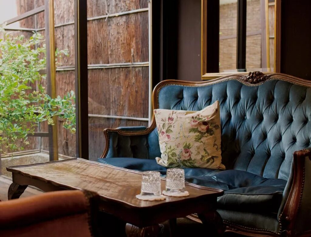• 空間の贅沢: 築100年の京町家の静けさと鮮やかなコバルトブルーが織りなす非日常のコントラスト