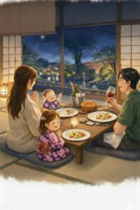 テレビボードの上で、今日も3匹のうさぎたちが我が家の賑やかな食卓を眺めています。 京都の南禅寺で「美食の目覚め」を果たした娘も、今ではすっかり「ごちそうの達人」に成長しました。