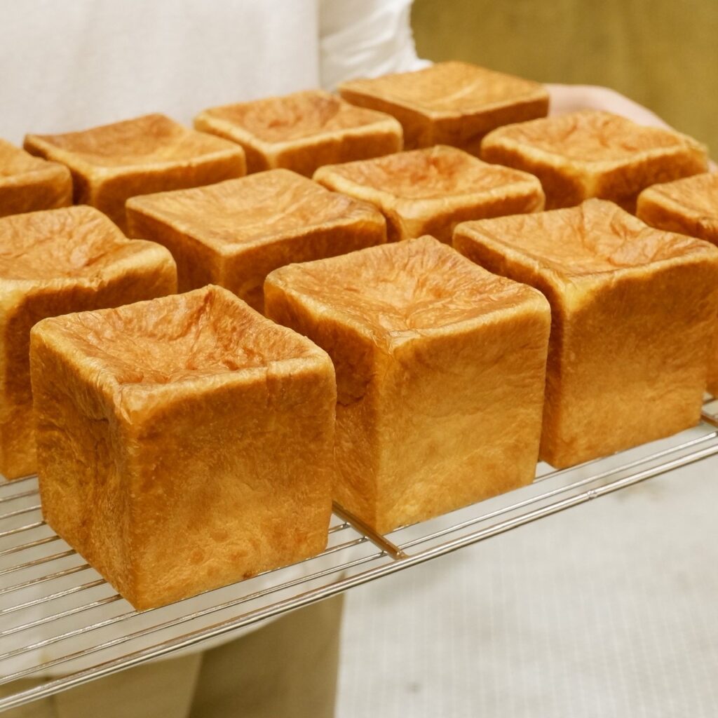 「究極の角食」外はしっかりとしたクラストで、中はもっちり柔らかい食感が楽しめる食パンです。国産小麦100%と天然酵母を使用しており、小麦本来の甘みと豊かな香りが特徴です。