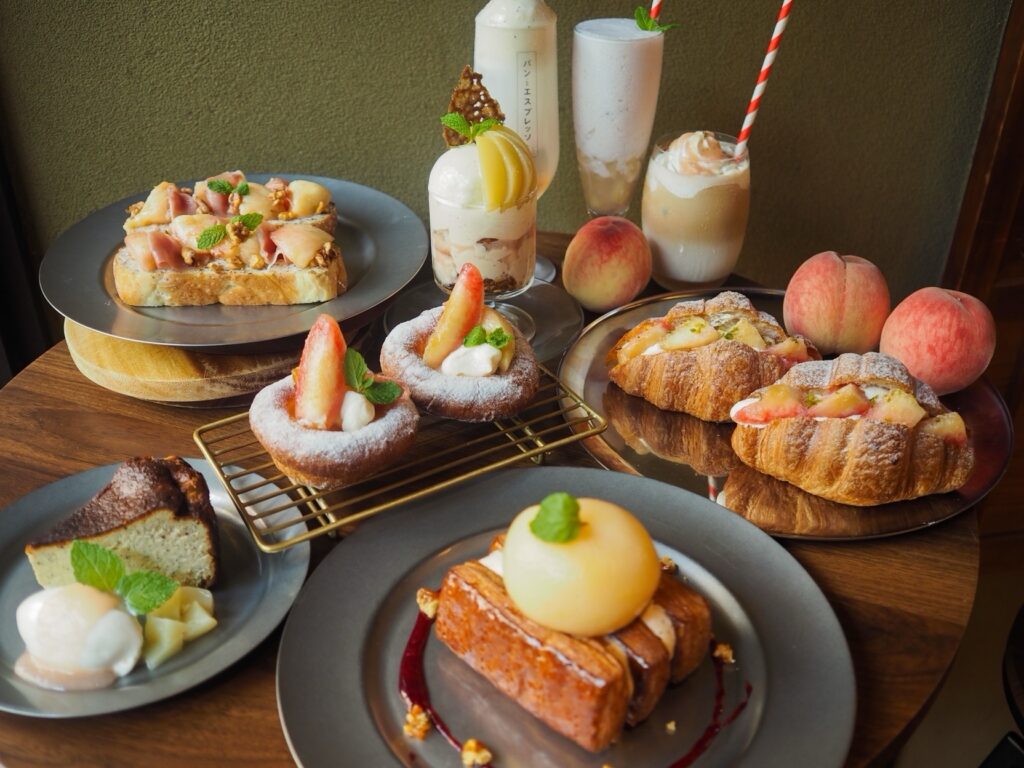 「パンとエスプレッソと京と」で過ごす時間は、京の四季の移ろいを静かに感じる特別なひとときです。旬の桃やいちじく、栗、マスカットといったフルーツを贅沢に使ったスイーツシリーズは、味わいだけでなく、見た目にも華やかな季節の便り。季節ごとに主役が変わるため、訪れるたびに新しい趣きに出会えます。